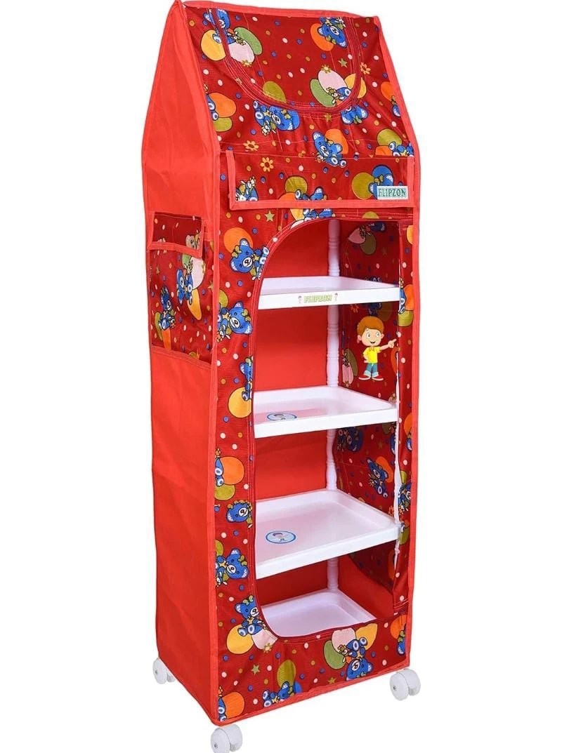 Multipurpose 5 Shelve Baby Wardrobe, Foldable, (Unbreakable Material, Medium, Red, Plastic)